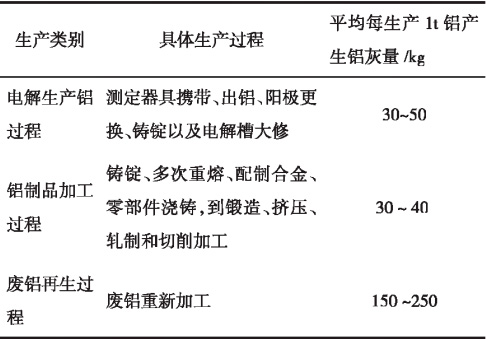所有的鋁冶煉鑄造技術(shù)中都會產(chǎn)生鋁灰,工序不同鋁灰在其中的含量占比也不同,具體見表1。