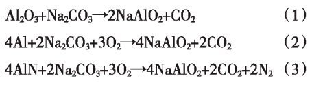 Tripathy等在回收鋁灰中的氧化鋁時,通過蘇打-焙燒法對鋁灰進(jìn)行預(yù)處理,隨后用堿性溶液浸出,反應(yīng)原理如(1)(2)(3)式: